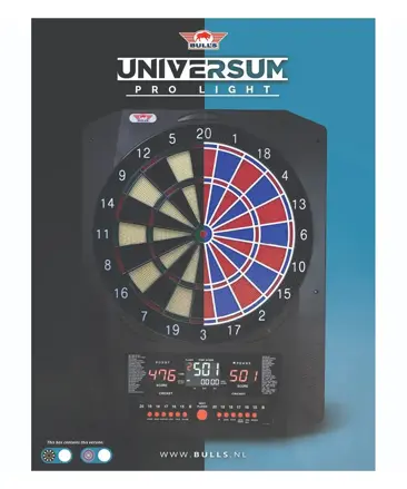 Bull's Universum Pro L Electronic Softtip Dartboard je prémiový elektronický terč určený pre domácich hráčov aj súťažné prostredie. Ponúka profesionálne rozmery, moderný dizajn a širokú škálu herných možností. Vďaka dvom LED displejom podporuje hru až 8 hráčov a udržiava skóre vždy prehľadne viditeľné. Terč je dostupný v dvoch farebných prevedeniach – Black/White a Red/Blue – a poskytuje realistický pocit z hry vďaka rozmerom zhodným s klasickým steelovým terčom.